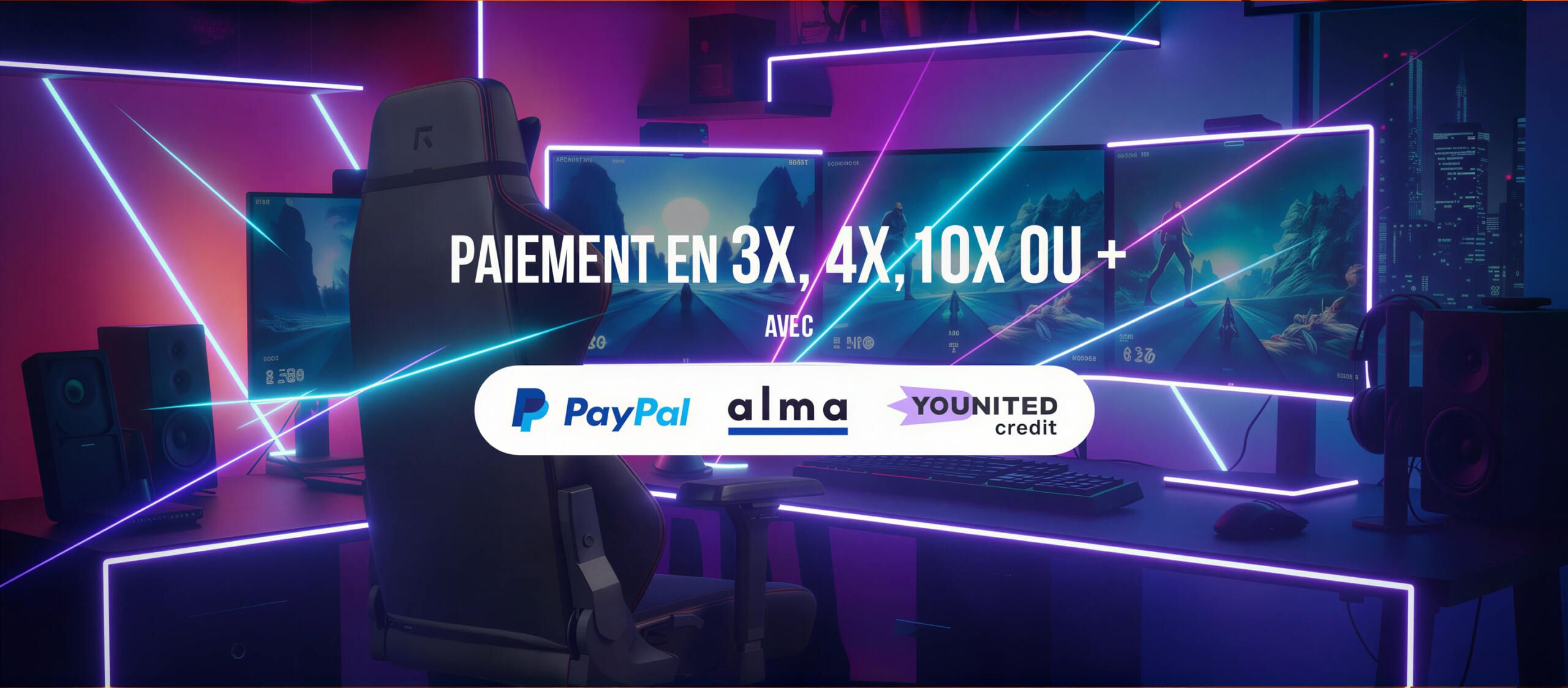 Avec REKT, vous avez votre chaise gaming ou votre bureau gamer avec rapidité et sécurité. Nous expédions votre commande en moins de 48h pour que vous l’ayez au plus tard dans les 72h. Notre site est sécurisé et offre différents moyens de paiement tels qu’Amazon Pay, PayPal,le paiement en 3/4 OU 10 fois avec notre partenaire ALMA, ou encore le paiement avec votre carte bleue tout simplement. Profitez de nos promotions spéciales chaise gaming Black Friday annuelles pour vous équiper au meilleur rapport qualité / prix du marché.