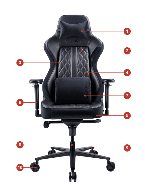 super design / très jolies finitions / assise dure mais confortable et résistante, micro aérée / parties recouvertes type velours hyper douces / accoudoirs réglables dans plusieurs axes / coussins de soutien au top / inclinaison rapide et facile / vérin de qualité ! mon geekos est au top. Merci Rekt