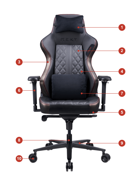 Sur ce dernier modèle, vous retrouverez les derniers accoudoirs améliorés REKT STEEL+ faits de métal et permettant tous les réglages 4D (hauteur, largeur, profondeur et pivot). Vous pourrez bloquer votre position préférentielle à votre guise.