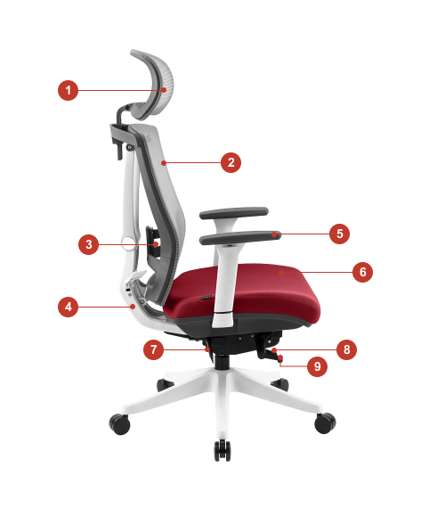 La OFFICE_R est conçue non seulement pour soulager la charge et la pression, mais également pour maintenir votre corps naturellement équilibré et bien soutenu afin que vous puissiez rester concentré sur votre travail.