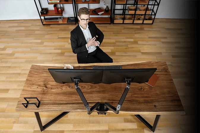 ✅ Supporte deux écrans plats ou incurvés de 17″ à 35″, jusqu’à 12 kg chacun