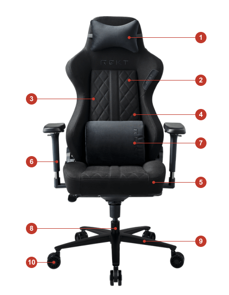 Sur ce dernier modèle, vous retrouverez les derniers accoudoirs améliorés REKT STEEL+ faits de métal et permettant tous les réglages 4D (hauteur, largeur, profondeur et pivot). Vous pourrez bloquer votre position préférentielle à votre guise.