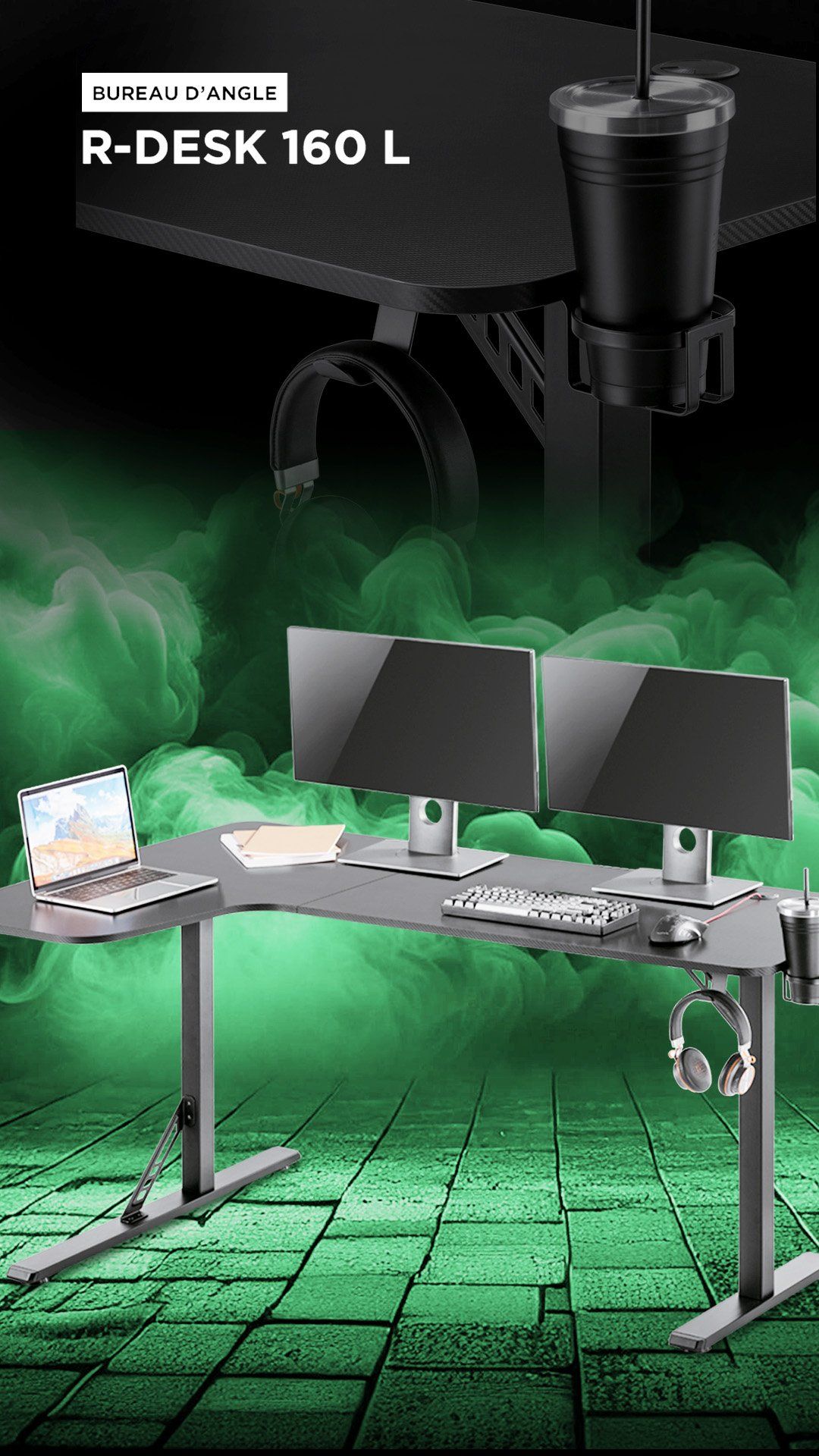 La gamme de bureau gaming offre un large choix allant de 1m10 à 1m60 de large.