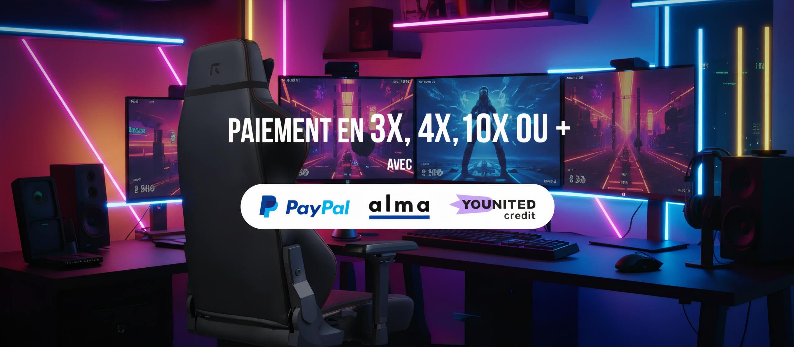 Avec REKT, vous avez votre chaise gaming ou votre bureau gamer avec rapidité et sécurité. Nous expédions votre commande en moins de 48h pour que vous l’ayez au plus tard dans les 72h. Notre site est sécurisé et offre différents moyens de paiement tels qu’Amazon Pay, PayPal,le paiement en 3/4 OU 10 fois avec notre partenaire ALMA, ou encore le paiement avec votre carte bleue tout simplement. Profitez de nos promotions spéciales chaise gaming Black Friday annuelles pour vous équiper au meilleur rapport qualité / prix du marché.